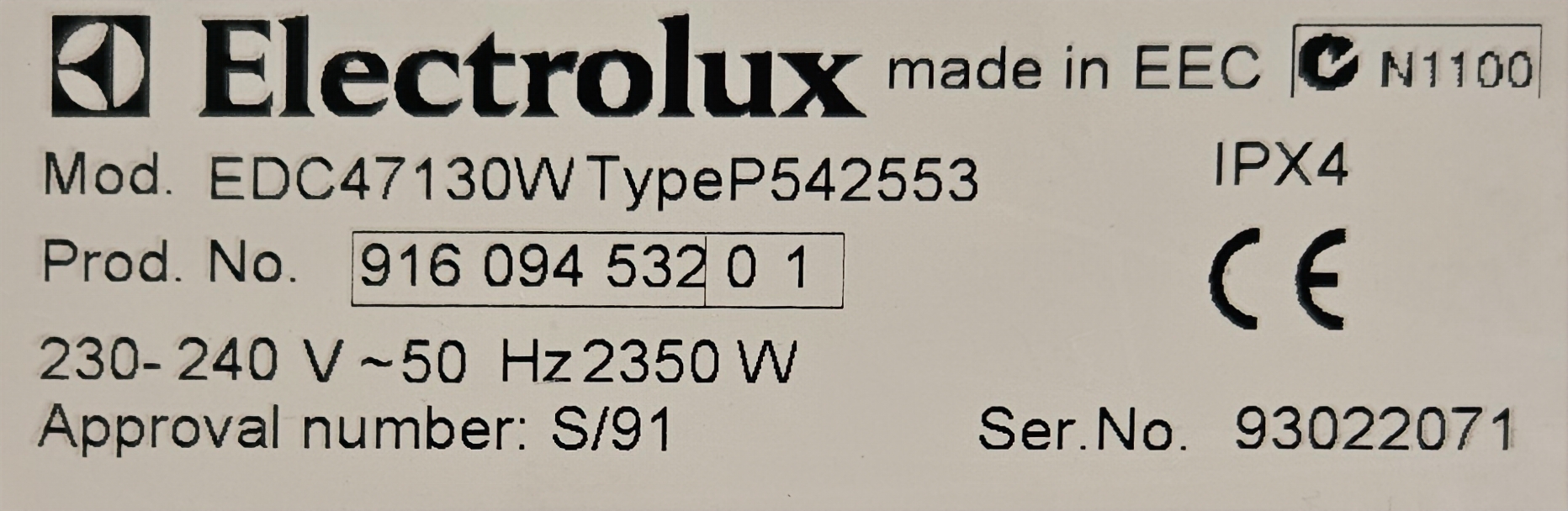 | Brand | Electrolux |