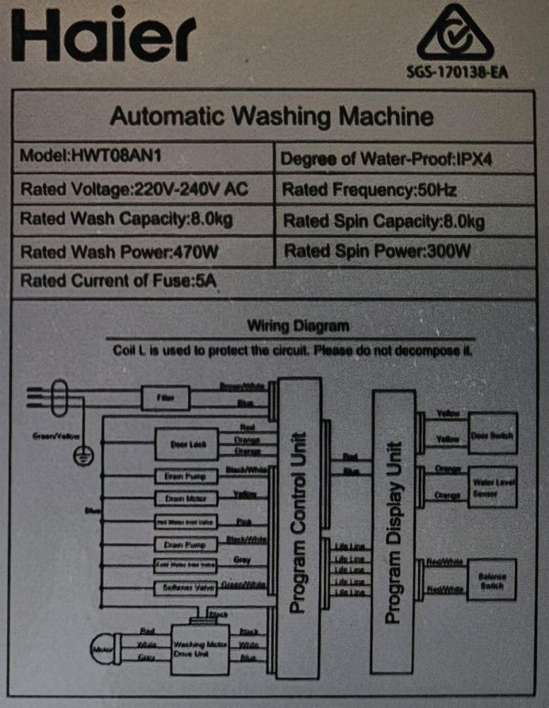 Haier HWT08AN1 8kg Top Loader Washing Machine