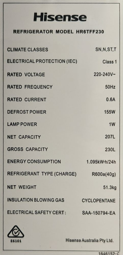 Hisense HR6TFF230 230L Top Mount Fridge Freezer