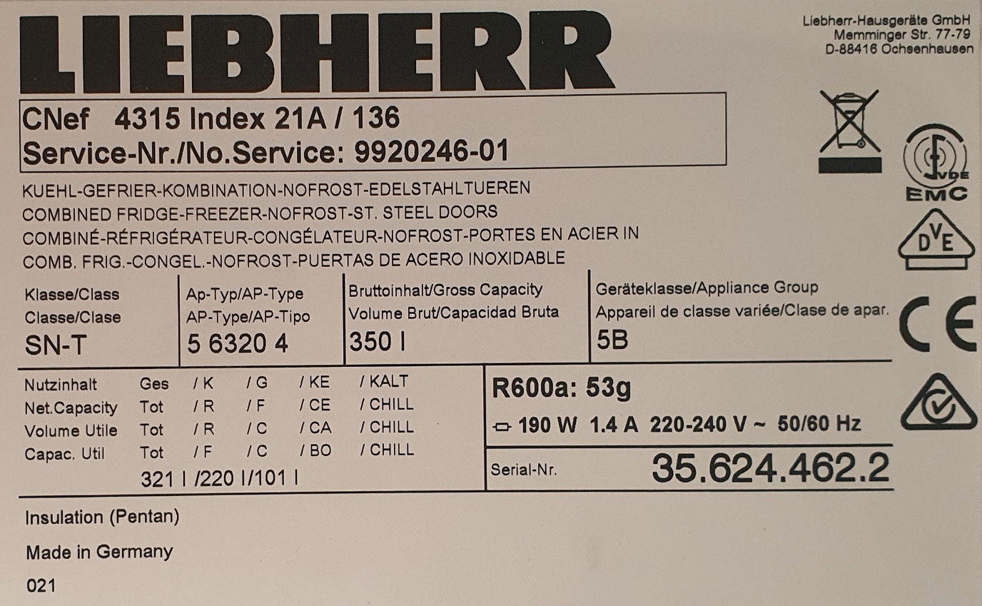 Liebherr CNEF4315 321L Bottom Mount Fridge Freezer
