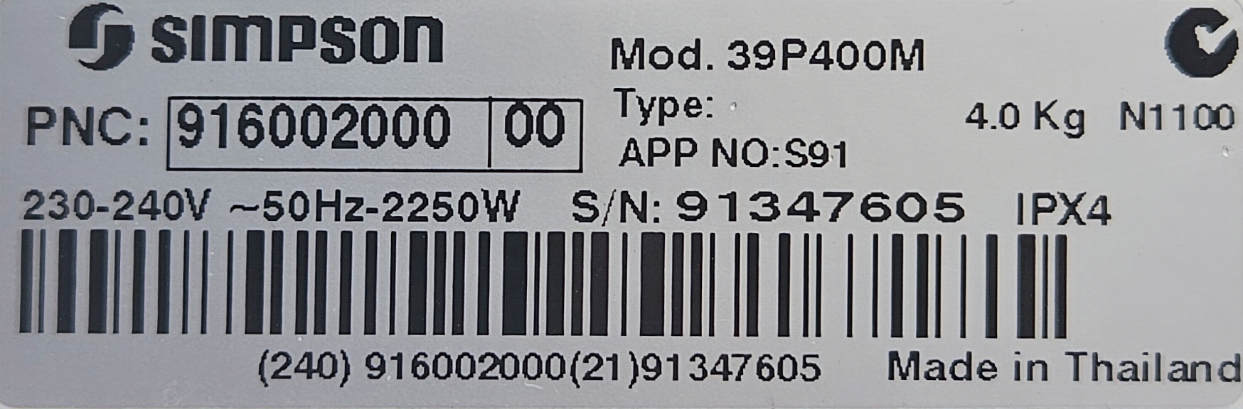 Be the first to review “Simpson 39P400M 4kg Vented Dryer”